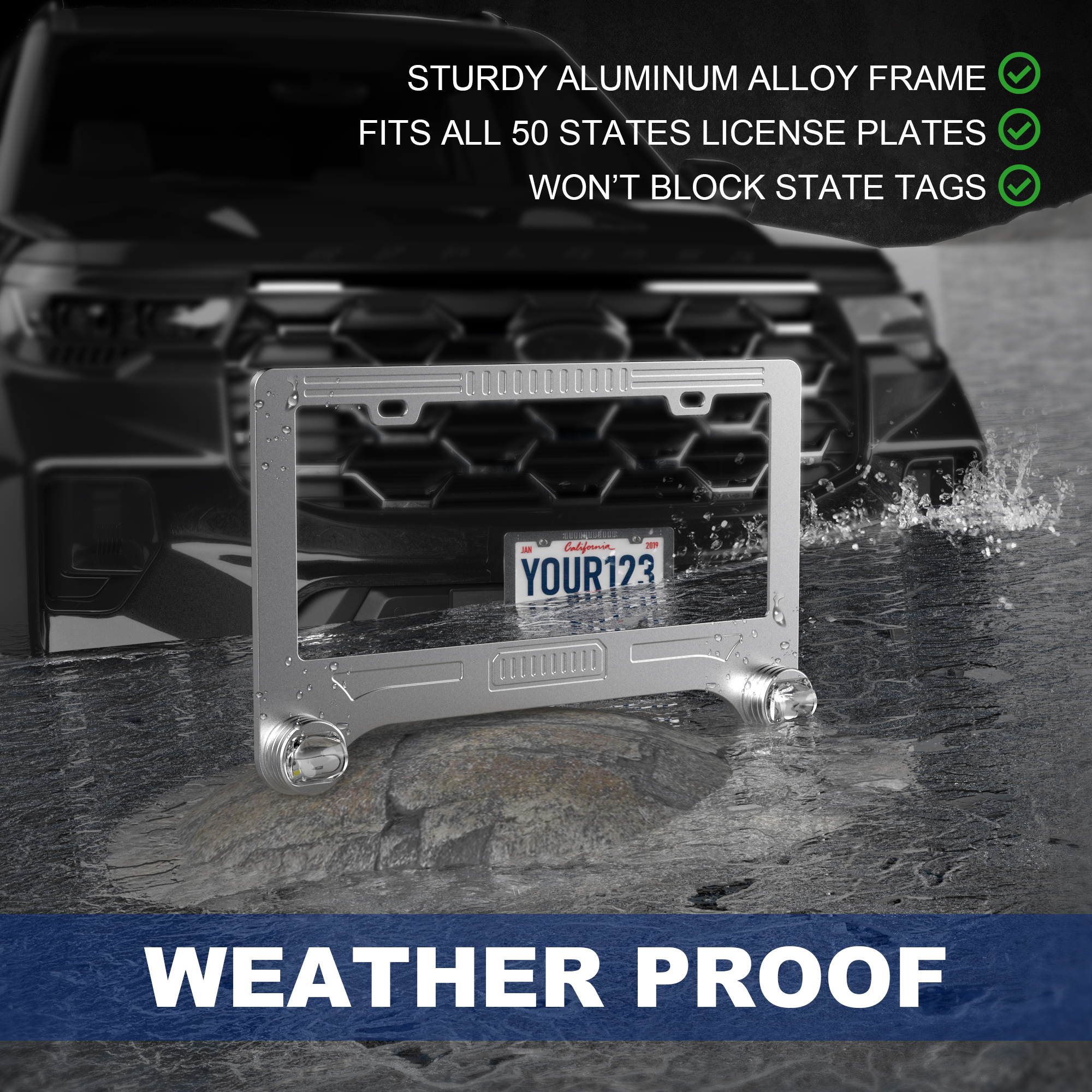 3. All-aluminum frame material, protect the license plate